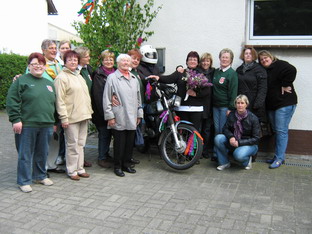 Bevor das Kaffeetrinken losging, haben wir für sie das Haus geschmückt, damit es beim Abholen der Majestät am Samstag nett aussieht. Da Monika begeisterte Motorrad (Beifahrin) ist, und auch Kugelschreiber sammelt, hatten wir uns dazu etwas überlegt und auch umgesetzt.