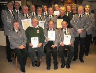 Des weiteren wurden geehrt: Emil Braun für 60 Jahre, Fred Weidemann für 50 Jahre, Wilhelm Tesch für 40 Jahre und Sabine Kröger und Luigi de Zan für 25 Jahre im Deutschen Schützenbund. Für 15 Jahre im Niedersächsischen Sportschützenverband wurden geehrt: Henning Alpers, Lutz Harke, Detlef Loos, Paul Roepke, Felix Schliephacke, Traute Soetebeer. Ines König und Bettina Weidemann erhielten die silberne Verdienstnadel des Niedersächsischen Sportschützenverbands. Herbert Kegel erhielt die goldene Ehrennadel, Ralf Schlak, Daniela Schlak und Michael Stips die bronzene Ehrennadel des Kreisschützenverbands.